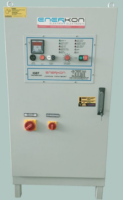 - Aşırı Güç Akım Limitasyonu: Korona Kontrol Ünitesi aşırı güçte akımı elektronik olarak limite ederek gücü başlangıç değerine düşürür ve sesli & ışıklı ikaz verir. Böylece sistem kendini korumaya almış olur.